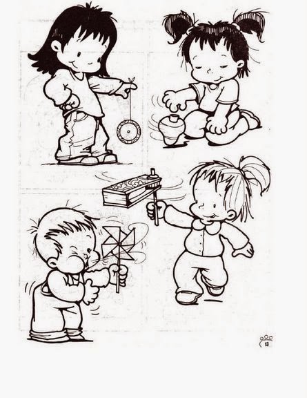 Desenho de crianças se divertindo com seus brinquedos